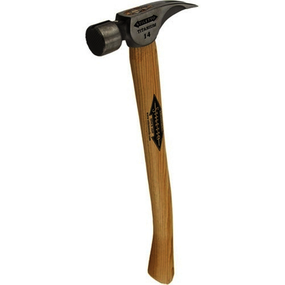 Stiletto® Framing Hammer | Nailing | 16 in Overall Length | Face Surface: Milled | 14 oz Head | Titanium Head | Curve Handle | Hickory Wood Handle | Straight Claw